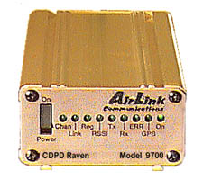 AirLink CDPD Raven The Raven is a rugged, full duplex Cellular Digital Packet Data (CDPD) modem that provides wireless transport capabilities for fixed and mobile applications. The Raven is an efficient and secure wireless packet data technology that is ideal for un-tethered applications. CDPD is more cost effective than circuit-switched cellular data for small volumes of data. It provides instantaneous response for transaction processing because there are no dialing delays. Additionally, built-in encryption maintains the security of the application data over the air. The CDPD Raven is ideally suited for all fixed and mobile Industrial and Commercial Applications, including Telemetry, SCADA, Public Safety, Dispatch, Field Service, Financial Transaction Processing, and Security. The Raven’s embedded TCP/IP stack enables virtually any type of remote device to access the CDPD network. The Raven is currently installed with many different types of Remote Terminal Units (RTUs) which perform remote metering and monitoring functions in the oil, gas, and water industries. The CDPD Raven can be a low-cost replacement for existing landline, private radio and circuit-switched cellular installations. The Raven is certified by numerous Public Safety application providers and is installed with many Police Departments throughout the US.